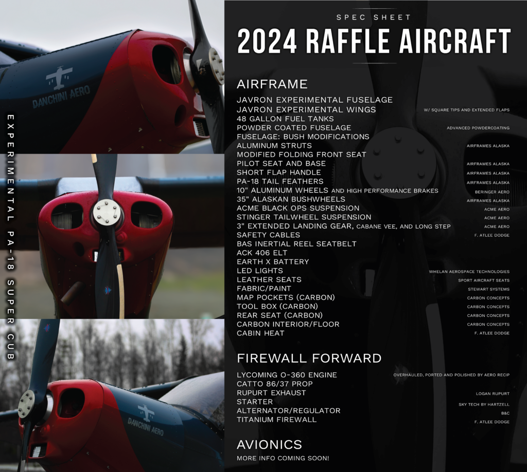 Every year the Alaska Airmen Association conducts a charitable raffle to raise funds towards our mission of promoting, preserving, and protecting aviation in Alaska. We partner with aviation businesses from all over the world to give away a beautiful bush-capable aircraft and other incredible aviation prizes. Funds from the raffle are used towards all Association programs from advocacy and scholarships to NextGen events and Fly-Ins. Every ticket purchased during the Aircraft Raffle Fundraiser helps to Support GA in AK!